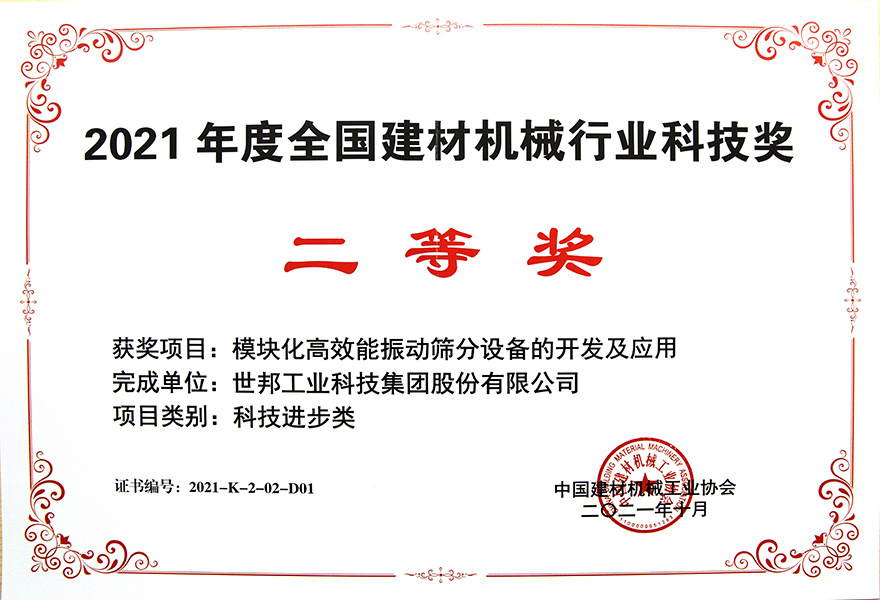 2021年度全國建材機(jī)械行業(yè)科技獎二等獎