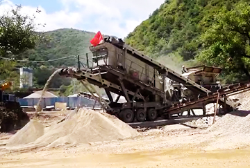 可以通過挖機(jī)或者鏟車上料到移動站的大料倉,料倉下給料機(jī)均勻給料到C6X顎破機(jī)內(nèi)破碎,顎破出來的料先上振動篩篩分篩分出部分成品,其余大料進(jìn)入HST單缸液壓圓錐破破碎之后,共用顎破出料的主皮帶機(jī)送料到振動篩篩分,篩分出三種規(guī)格的成品料,篩網(wǎng)可根據(jù)客戶具體需要定制。