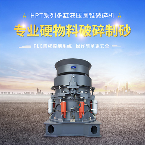 HPT系列多缸液壓圓錐破碎機(jī)工作時,電機(jī)通過皮帶輪和三角帶帶動設(shè)備傳動軸轉(zhuǎn)動,傳動軸通過大小錐齒輪帶動偏心套繞主軸轉(zhuǎn)動,偏心套帶動動錐做旋擺運動,使動錐和定錐時而靠近、時而遠(yuǎn)離軋臼壁,物料在軋臼壁和破碎壁形成的破碎腔內(nèi)不斷受到擠壓、沖擊而破碎,破碎的物料從下部排出。