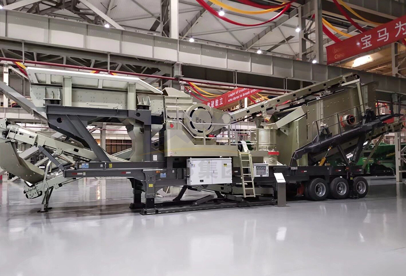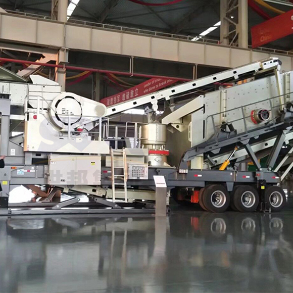 移動生產線通常以外接電力電源為動力來源,原料由振動給料機均勻地送到顎式破碎機或者反擊式破碎機進行粗碎作業(yè),粗碎后的物料由皮帶輸送機送入到圓錐式破碎機或者反擊式破碎機進行進一步破碎,細碎后的物料被輸送到振動篩進行篩分,達到成品粒度要求的物料被由成品輸送帶輸出即為成品;未達到成品粒度要求的物料從振動篩返回沖擊式破碎機或者圓錐式破碎機重新加工,形成閉路多次循環(huán)。成品粒度可按用戶的需求進行組合和分級。