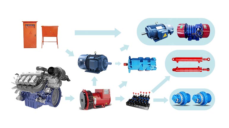 支持全液壓驅(qū)動、純電驅(qū)動、雙動力驅(qū)動及直聯(lián)+液壓驅(qū)動多種動力模式。其中,雙動力系統(tǒng)可智能切換油電,無電地區(qū)柴油作業(yè),有電地區(qū)電力節(jié)能,顯著降低能耗開支。