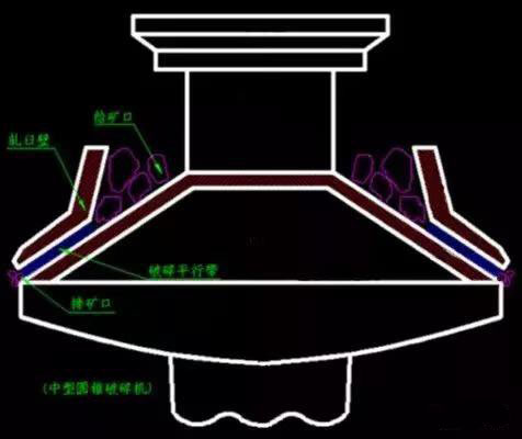 短頭型的平行帶較長(zhǎng),給礦口和排礦口均比較小,可以獲得較細(xì)產(chǎn)品粒度。一般均將平行帶較長(zhǎng)的短頭型作為細(xì)碎放在中碎之后。而標(biāo)準(zhǔn)型由于平行帶較短,故破碎產(chǎn)品較粗,產(chǎn)量較高,一般放在粗破碎之后,即顎破或旋回破碎機(jī)之后作為中碎用。一言以概之,標(biāo)準(zhǔn)型、中型、短頭型的給礦口逐漸減小,而破碎腔和平行區(qū)漸長(zhǎng)。