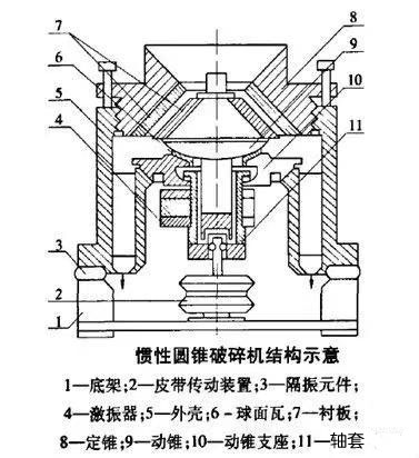 該機(jī)的缺點是能耗較高,機(jī)器笨重,產(chǎn)量也偏低。隨著圓錐破碎機(jī)日益高能化的發(fā)展方向,該機(jī)也將逐漸被液壓圓錐破碎機(jī)取代。
