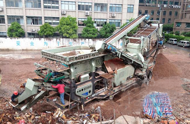 建筑垃圾的處理過程大概為:分揀—除鐵—給料—粗碎—中碎—篩分;所需設(shè)備有除鐵器、給料機、顎式破碎機、反擊破碎機、振動篩以及運輸物料的輸送帶;為了配合不同用戶的實際情況與需求,現(xiàn)分為固定式與移動式兩種。
