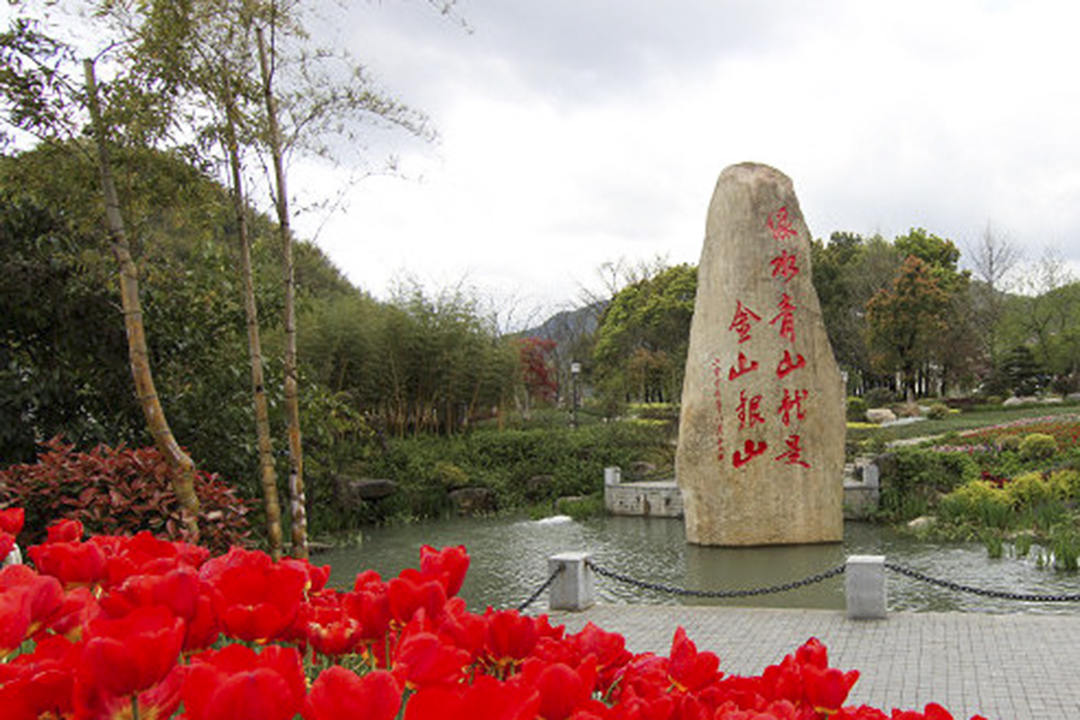▲“綠水青山就是金山銀山”紀念石碑(圖源自牡丹晚報)
