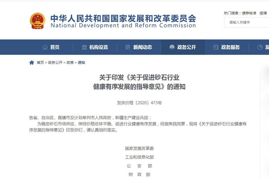 同一時間段,為穩(wěn)定砂石市場供應、保持價格總體平穩(wěn)、促進行業(yè)健康有序發(fā)展,國家發(fā)改委等十五部門和單位聯(lián)合印發(fā)《關于促進砂石行業(yè)健康有序發(fā)展的指導意見》,為砂石行業(yè)健康有序發(fā)展做出明確指導。