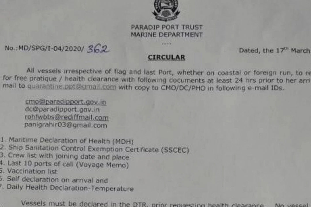 ▲印度航運總局14天隔離檢疫通知