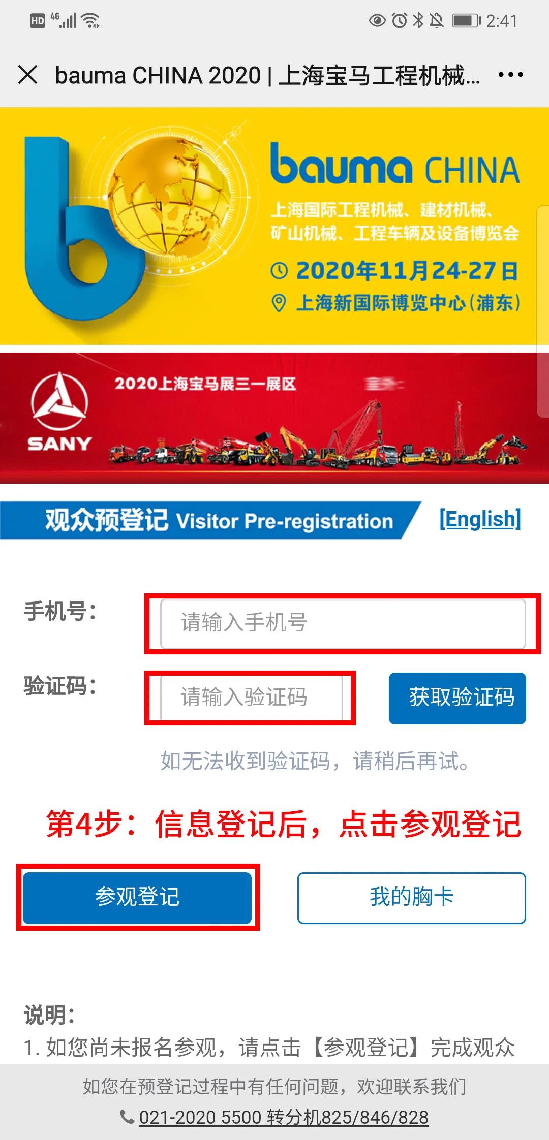 4. 填寫手機(jī)號及驗(yàn)證碼,點(diǎn)擊【參觀登記】