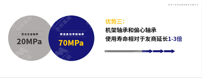 傳統(tǒng)軸承以巴氏合金制作而成,硬度低,承載能力低20MPa,易脫落,每年都要進(jìn)行維修。而HGT使用鑄造高鉛青銅軸承,承載能力達(dá)70MPa,壽命可達(dá)3-5年。