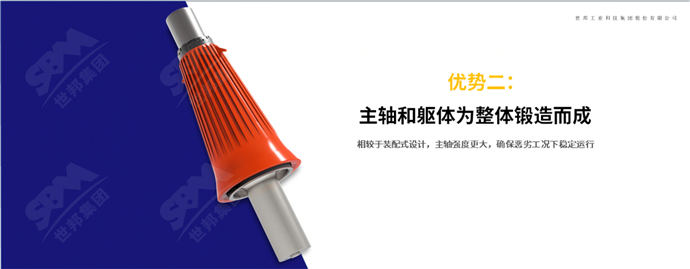 主軸和軀體為整體鍛造,相較于裝配式設(shè)計(jì),不存在連接點(diǎn)松動(dòng)問題,主軸強(qiáng)度更大,確保惡劣工況下穩(wěn)定運(yùn)行。