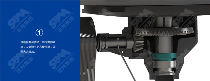 采用錐齒輪整體傳動(dòng)的優(yōu)化設(shè)計(jì),結(jié)構(gòu)更加緊湊,安裝調(diào)節(jié)更方便快捷,效率大大增加。
