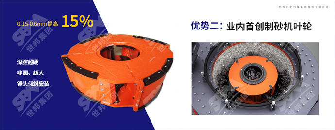 配置制砂機(jī)葉輪,特制高硬度“石打石”腔型結(jié)構(gòu),錘頭傾斜安裝,破碎效率比傳統(tǒng)機(jī)型提高15%左右。