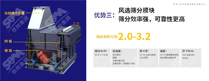 根據(jù)不同客戶需求,在無(wú)需更換篩網(wǎng)和硬件的情況下,通過(guò)調(diào)節(jié)下層篩上料的返料控制和風(fēng)量,可輕松實(shí)現(xiàn)細(xì)度模數(shù)從2.3-3.2、含粉量從5-13%之間的調(diào)節(jié)。