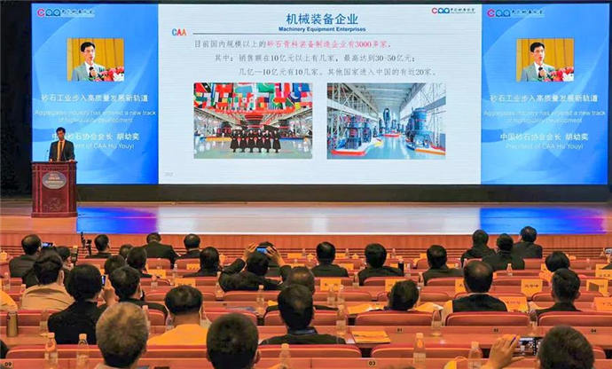 在主旨演講環(huán)節(jié),中國(guó)砂石協(xié)會(huì)胡幼奕會(huì)長(zhǎng)做了《砂石工業(yè)步入高質(zhì)量發(fā)展新軌道》的主旨報(bào)告。胡會(huì)長(zhǎng)不僅從國(guó)家和地方政府發(fā)布的政策、未來(lái)經(jīng)濟(jì)發(fā)展趨勢(shì)、砂石骨料的市場(chǎng)需求等層面深度解析了目前砂石行業(yè)的發(fā)展?fàn)顩r,更從行業(yè)角度深度剖析了砂石行業(yè)的未來(lái)發(fā)展方向和發(fā)展模式,指出高品質(zhì)機(jī)制砂將是未來(lái)基建用砂石主要供應(yīng)源,所以砂石企業(yè)要充分利用礦石產(chǎn)業(yè)得天獨(dú)厚的條件,要敢于思變,通過(guò)理念、科技、模式等全方位的顛覆創(chuàng)新,為砂石產(chǎn)業(yè)綠色發(fā)展和高質(zhì)量發(fā)展提供堅(jiān)實(shí)支撐,在保護(hù)好環(huán)境的同時(shí)讓礦山產(chǎn)業(yè)高質(zhì)量發(fā)展。