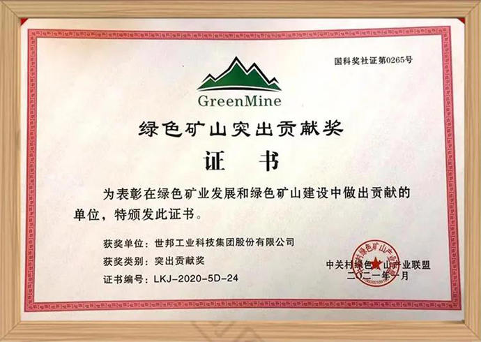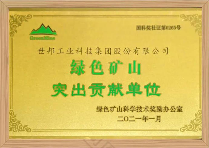 4月8日,“2021年全國綠色礦山年會(huì)暨頒獎(jiǎng)典禮”在山東德州隆重舉行,會(huì)上對在2020年綠色礦山建設(shè)中做出突出貢獻(xiàn)的單位進(jìn)行了表彰,世邦集團(tuán)作為唯一一家礦山企業(yè)、技術(shù)支撐單位名列其中。