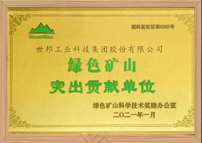 作為《砂石行業(yè)綠色礦山建設(shè)規(guī)范》(點(diǎn)擊閱讀)的起草單位,世邦集團(tuán)多年來(lái)與國(guó)內(nèi)外知名院校、設(shè)計(jì)院合作,注重綠色化、智慧化礦山建設(shè),不斷加大創(chuàng)新力度,致力于為客戶項(xiàng)目綠色、高效、智能生產(chǎn)而提供增值服務(wù)。世邦憑借在綠色礦山領(lǐng)域取得的卓越成績(jī),于2021年1月獲“綠色礦山突出貢獻(xiàn)單位”榮譽(yù)稱號(hào)。
