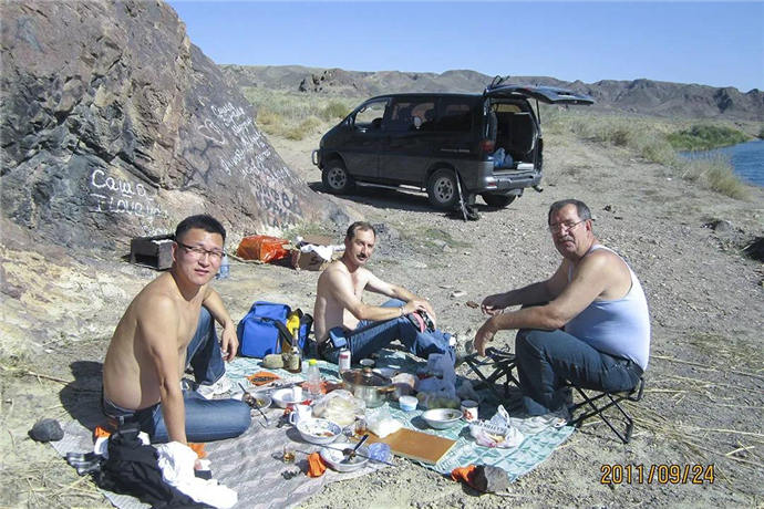 (休息時間與客戶相約一起在礦山邊釣魚、游泳、野餐)