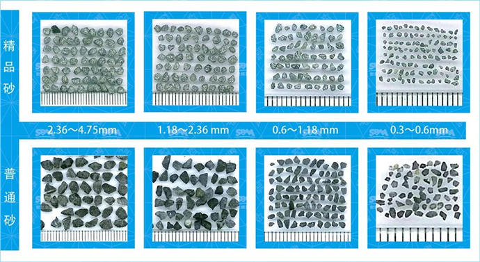 高頻“石打石”腔型,獲得多立方體物料,少針片狀,減磨損,增強度,易泵送。與普通砂相比,VU砂粒型更圓潤,表面棱角、毛刺大程度減少。