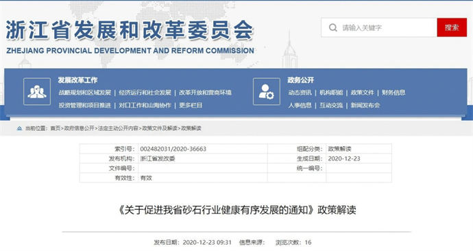 依托獨特地理資源優(yōu)勢,浙江砂石行業(yè)發(fā)展日新月異,為規(guī)范發(fā)展,浙江省發(fā)展改革委等15單位聯合發(fā)文《關于促進我省砂石行業(yè)健康有序發(fā)展的通知》。