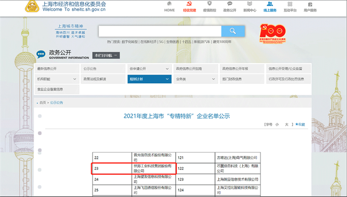 2022年5月19日-25日,上海市經(jīng)濟(jì)和信息化委員會(huì)公示上海市“專精特新”入選企業(yè)名單,世邦集團(tuán)憑借在裝備制造領(lǐng)域的深厚積累和創(chuàng)新實(shí)力,成功獲選。