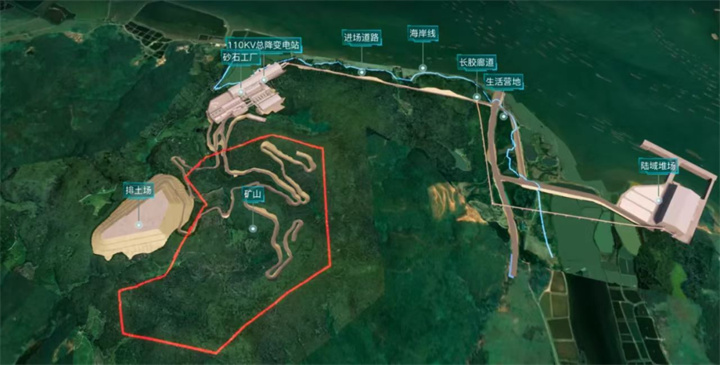 中電建陽西項目是陽江地區(qū)頭等綠色礦山建材項目,是集開采、運(yùn)輸、加工和銷售一體的綠色建材基地,也是“建設(shè)、生產(chǎn)、運(yùn)營、修復(fù)”全產(chǎn)業(yè)鏈一體化項目。項目建設(shè)規(guī)模大,資源儲量約2億噸,建設(shè)總投資約52億元,主要由礦山開采、砂石工廠、長距離運(yùn)輸廊道三大部分組成,配套重量級港口碼頭。此外,項目地理位置優(yōu)越,地處大灣區(qū)、北部灣城市群和海南自貿(mào)港三大國家戰(zhàn)略的交匯地帶,西可到茂名、湛江,東可達(dá)江門、珠海,項目投產(chǎn)后或可通過海運(yùn)輻射粵港澳大灣區(qū)主要中心城市及東南亞市場。