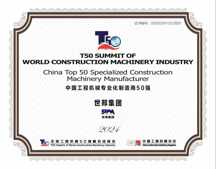 榮譽是對過去一段歷程的肯定和總結(jié),站在新的歷史起點上,世邦集團將繼續(xù)秉持品質(zhì)至上,客戶前列的理念,不斷追求創(chuàng)新與發(fā)展,力求在全球工程機械行業(yè)中樹立起更具影響力的中國品牌形象,為中國工程機械產(chǎn)業(yè)的高質(zhì)量發(fā)展和中國制造走向世界貢獻更多力量。