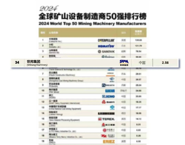 在此次峰會上,官方發(fā)布了多個行業(yè)重磅榜單,世邦集團憑借卓越的技術創(chuàng)新實力、強大的裝備制造能力、廣泛的市場認可度和品牌影響力成功榮登《2024全球礦山設備制造商50強》與《2024中國工程機械專業(yè)化制造商50強》雙料榜單,分別位列第34位及第10位。此次榜上有名,更進一步證明了世邦在礦山設備領域的實力和影響力。