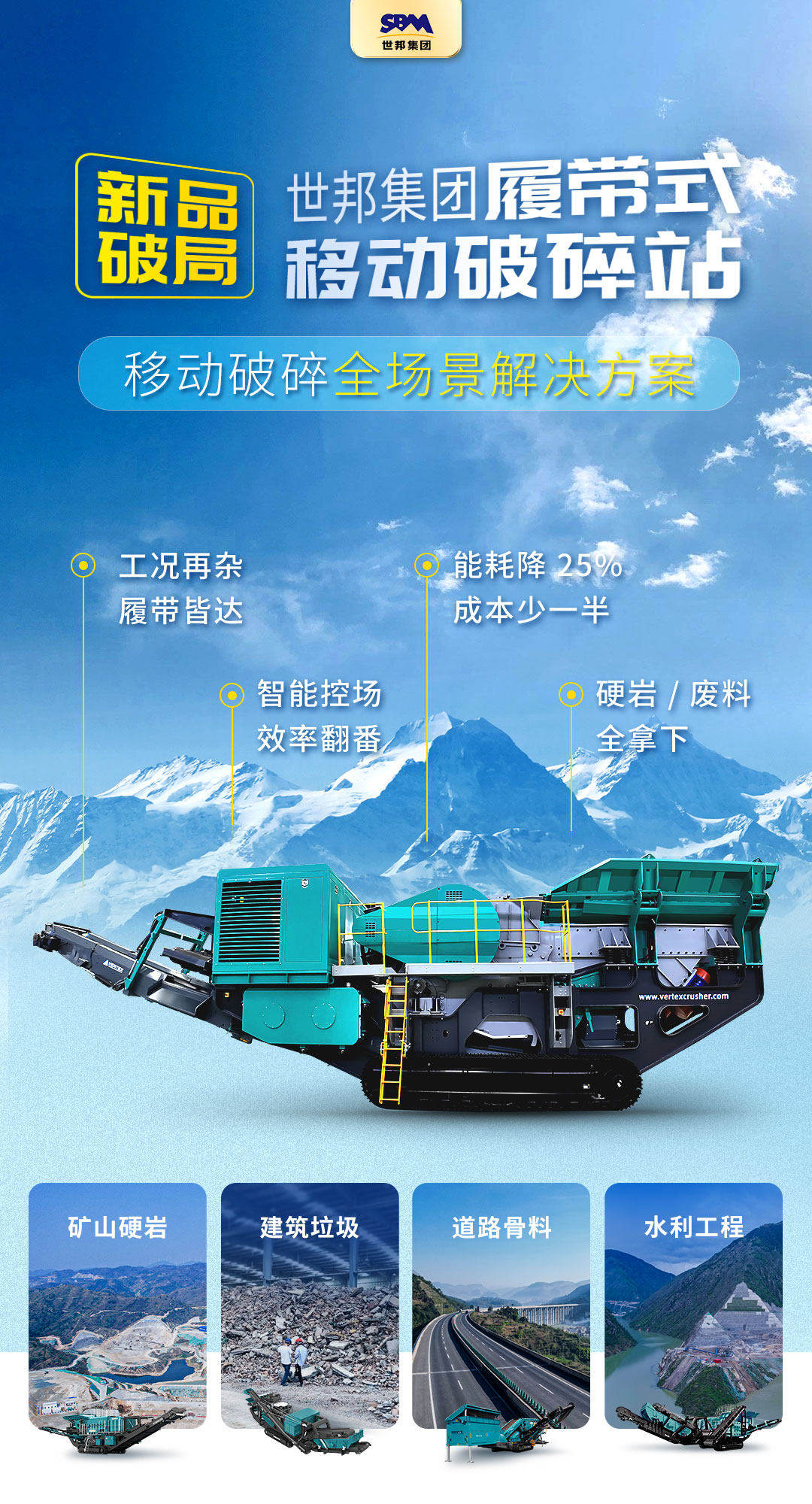 從礦山的硬巖破碎到建筑垃圾的循環(huán)利用,從道路建設(shè)的骨料制備到水利工程的靈活作業(yè),世邦集團履帶式移動破碎站以 “靈活、智能、節(jié)能、低碳” 四大核心特質(zhì),重新定義破碎作業(yè)標準。