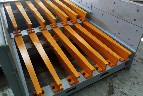采用NM耐磨鋼組焊而成的棒條結(jié)構(gòu),不僅壽命長,篩分效率高,安裝調(diào)整也非常便捷;棒條開口設(shè)定可在80-200mm范圍內(nèi)調(diào)節(jié);兩段棒條組階梯高落差結(jié)構(gòu),使得物料二次分散,能有效剔除小于破碎機(jī)緊邊排礦口的細(xì)料免于重復(fù)破碎,剔除效率90%以上,大大降低初段破碎機(jī)負(fù)荷。