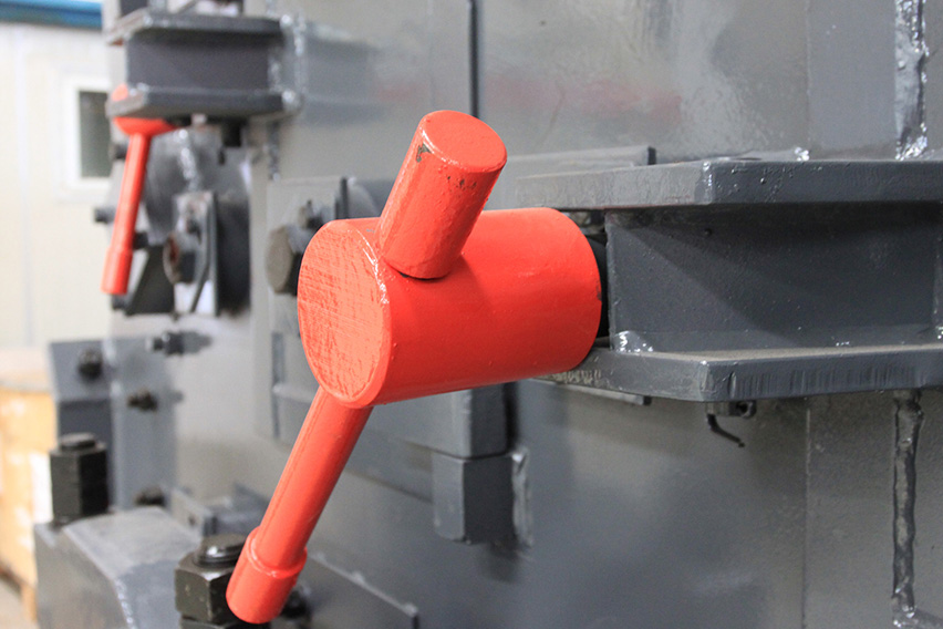 PF反擊破在機(jī)架兩側(cè)裝有相同的兩套棘輪翻蓋裝置,該裝置由高強(qiáng)度的左、右旋梯形螺桿和棘輪換向機(jī)構(gòu)組成。當(dāng)反擊破需要停機(jī)進(jìn)行更換配件等養(yǎng)護(hù)檢修操作時,用戶可通過該裝置輕松平穩(wěn)的啟閉反擊破后上蓋進(jìn)行檢修操作。