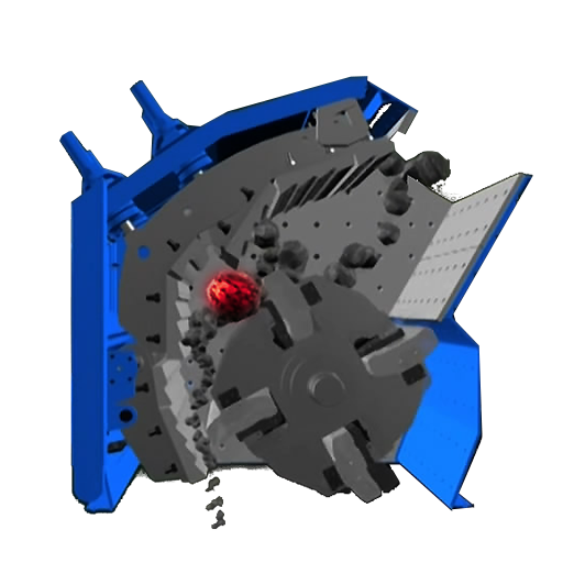 PF系列反擊破利用沖擊能破碎物料。轉(zhuǎn)子在電動機(jī)的帶動下高速旋轉(zhuǎn),從進(jìn)料口進(jìn)入的物料與轉(zhuǎn)子上的板錘撞擊,受到板錘的高速沖擊被破碎;破碎后的物料又被反擊到襯板上再次破碎;末了從出料口排出。