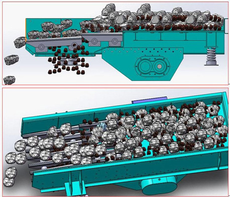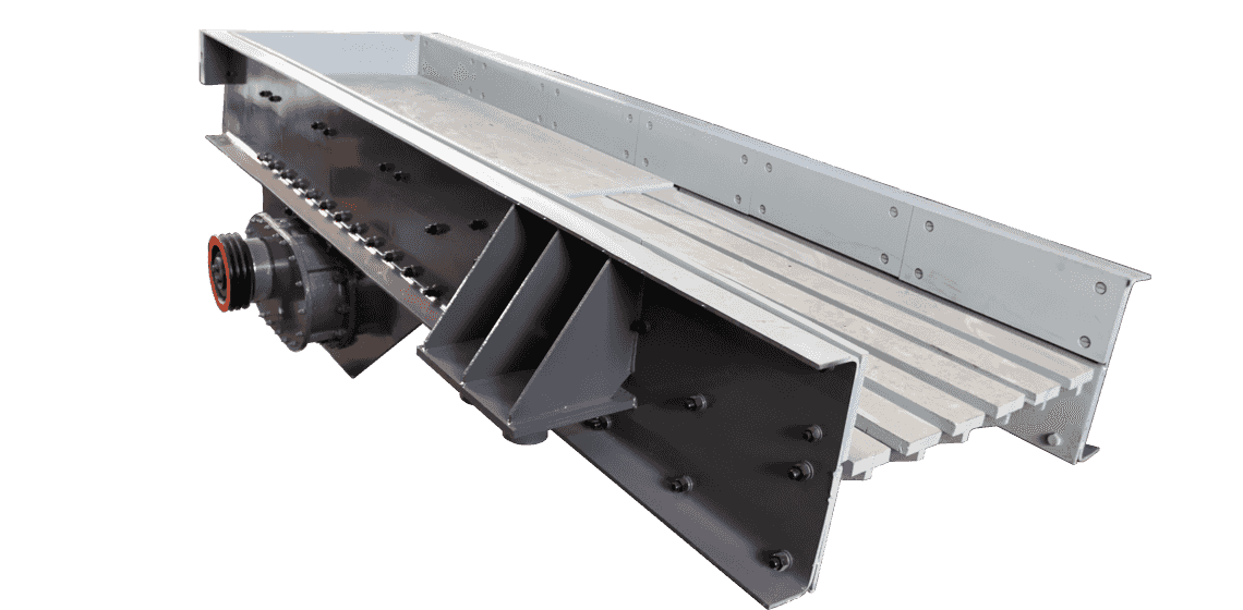 在生產(chǎn)線中,ZSW振動給料機可用于開采的礦石、巖石、河卵石和建筑垃圾等塊狀和顆粒狀物料的給料作業(yè);料槽配置單層篦條,可以對物料進行簡單預篩分,能有效去除原料中的細料和雜質(zhì)。