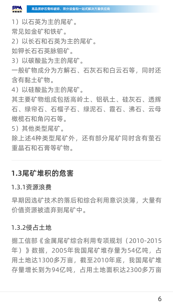 隨著我國環(huán)保力度的加大,如何妥善處理礦產(chǎn)資源開發(fā)過程產(chǎn)生的尾礦,實現(xiàn)資源綜合利用成為在礦山企業(yè)面前的一個重要問題。事實上,根據(jù)尾礦礦物組成、巖石性質(zhì)、粒度特征因素,科學(xué)合理的設(shè)計制砂工藝流程,可實現(xiàn)85%的尾礦利用率。