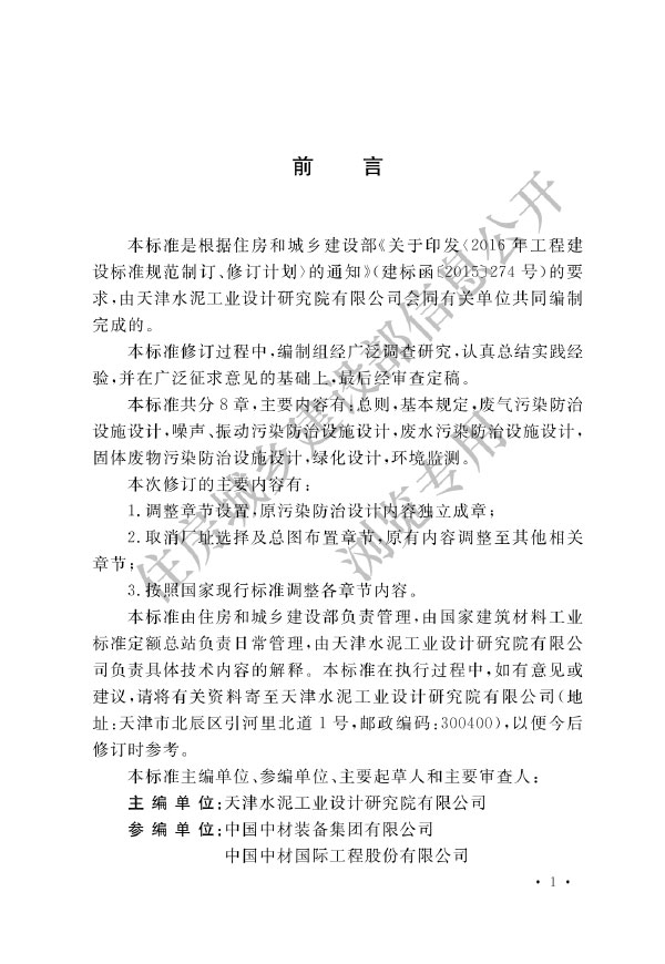 的通知》建標(biāo)函[2015]274號(hào))的要求,由天津水泥工業(yè)設(shè)計(jì)研究院有限公司會(huì)同有關(guān)單位共同編制完成的。" />