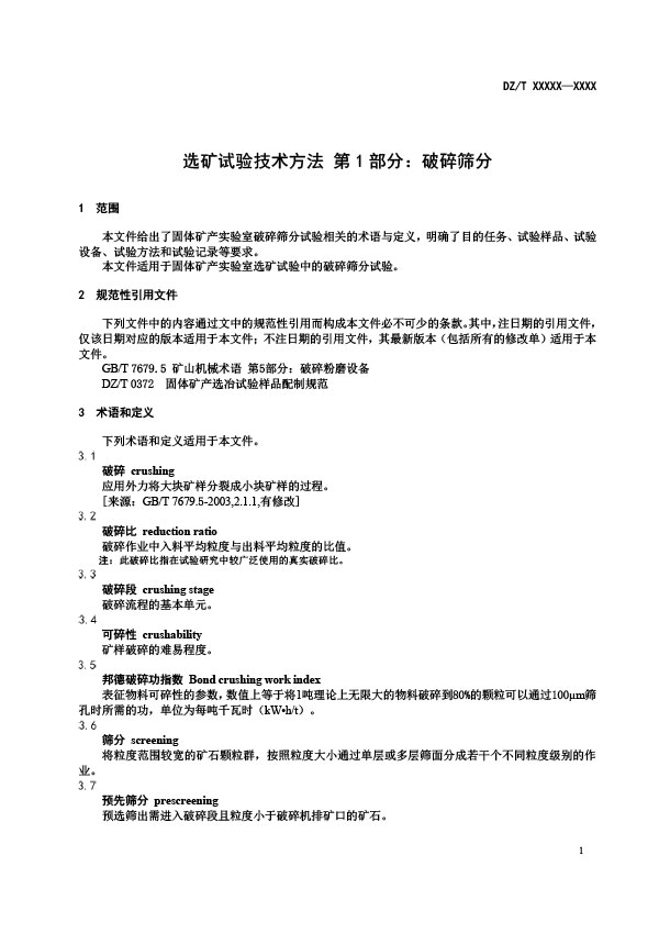 選礦試驗(yàn)技術(shù)方法 第1部分:破碎篩分