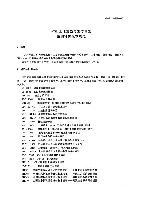 礦山土地復墾與生態(tài)修復監(jiān)測評價技術(shù)規(guī)范