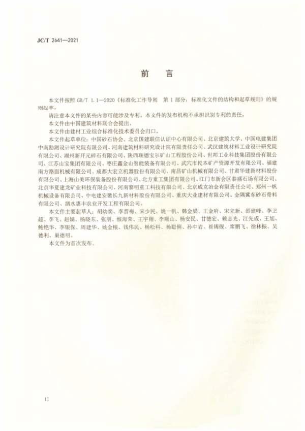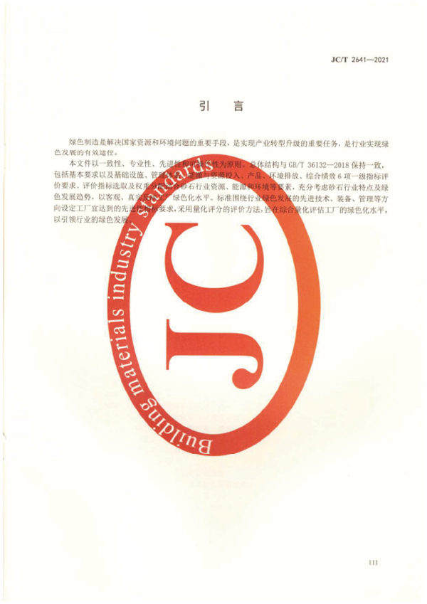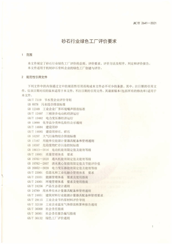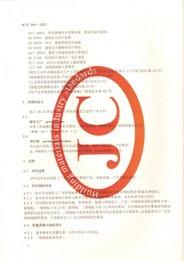 本標準根據(jù)砂石行業(yè)特點及綠色發(fā)展趨勢,以節(jié)能、減排、綠色、低碳為核心,圍繞行業(yè)先進技術(shù)、裝備、管理等方向,制定了綜合全面的砂石行業(yè)綠色工廠評價指標體系,適用于機制砂石骨料企業(yè)的綠色工廠創(chuàng)建與評價。