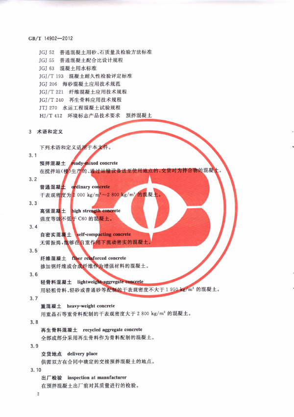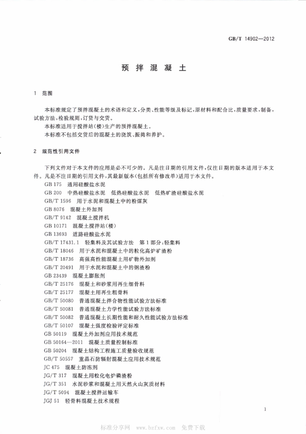 預(yù)拌混凝土是混凝土生產(chǎn)由粗放型生產(chǎn)向集約化大生產(chǎn)的轉(zhuǎn)變,實(shí)現(xiàn)了混凝土生產(chǎn)的專業(yè)化、商品化和社會化。本標(biāo)準(zhǔn)適用于攪拌站(樓)生產(chǎn)的預(yù)拌混凝土,不包括交貨后的混凝土的澆筑、振搗和養(yǎng)護(hù)。